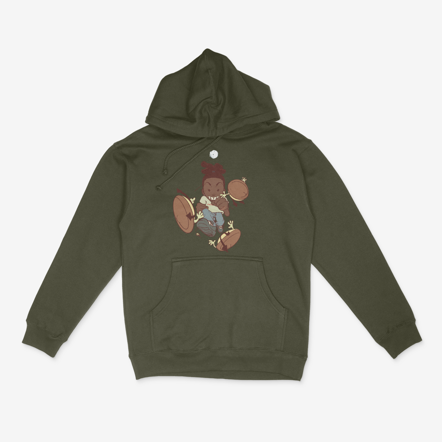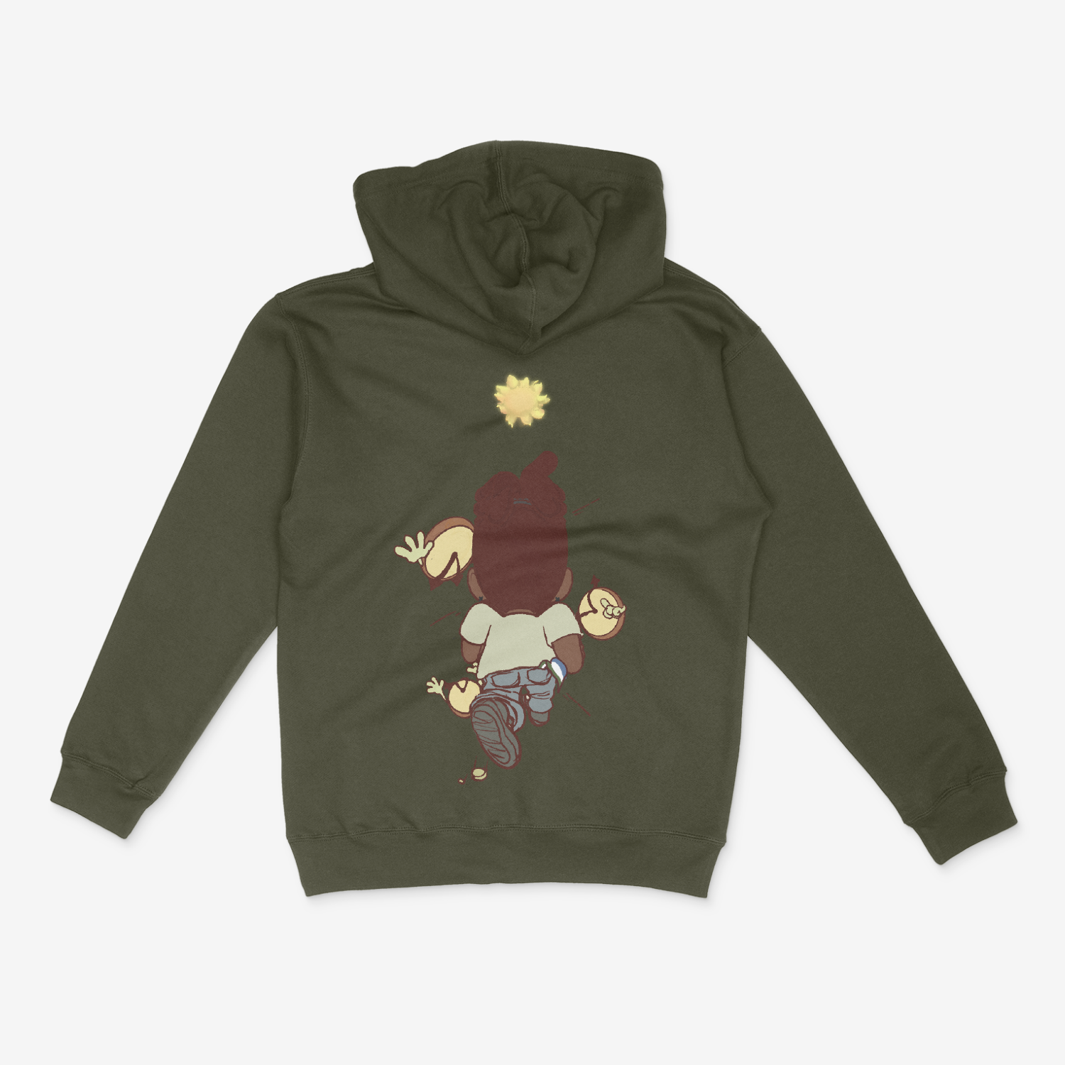 Raleighwood x LesTheGenius "Find Your Chase" Army Hoodie. Printed "Lap Around The Sun" Pack front and back mixtape covers.