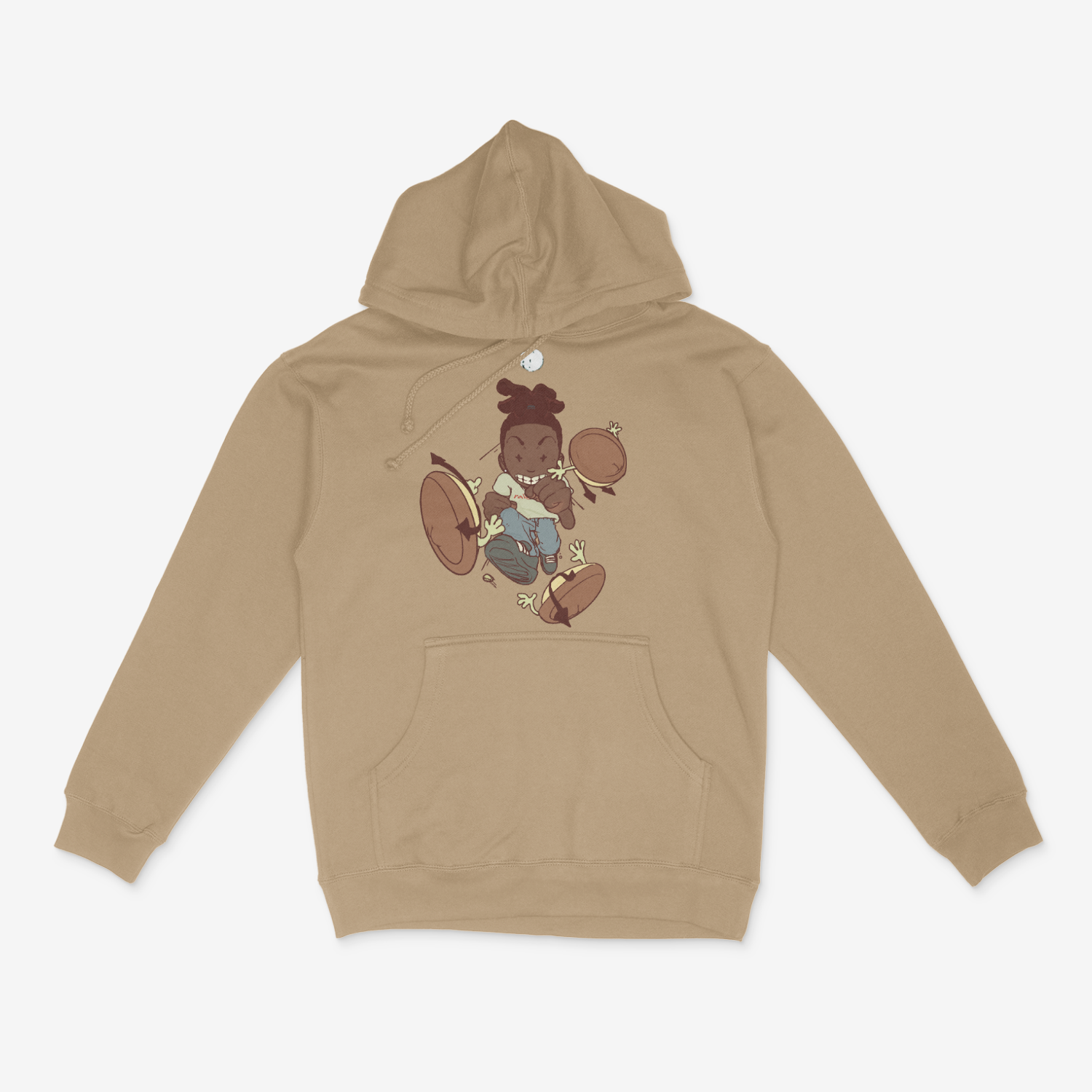 Raleighwood x LesTheGenius "Find Your Chase" Sandstone Hoodie. Printed "Lap Around The Sun" Pack front and back mixtape covers.