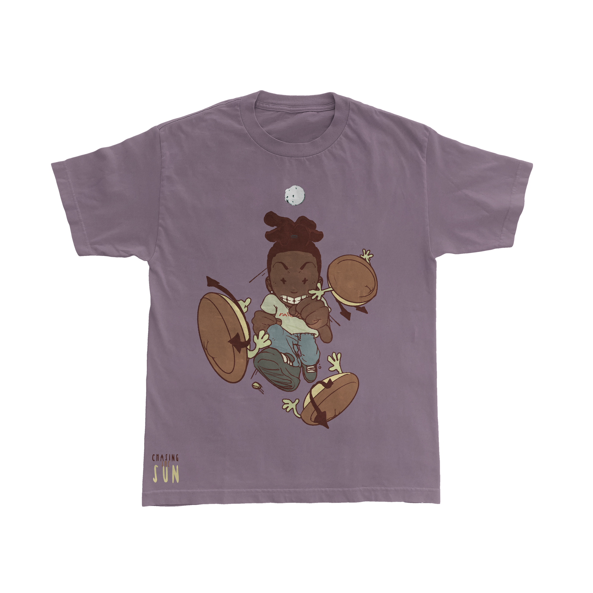 Raleighwood x LesTheGenius "Find Your Chase" Wine Tee-Shirt. Printed "Lap Around The Sun" Pack front and back mixtape covers.